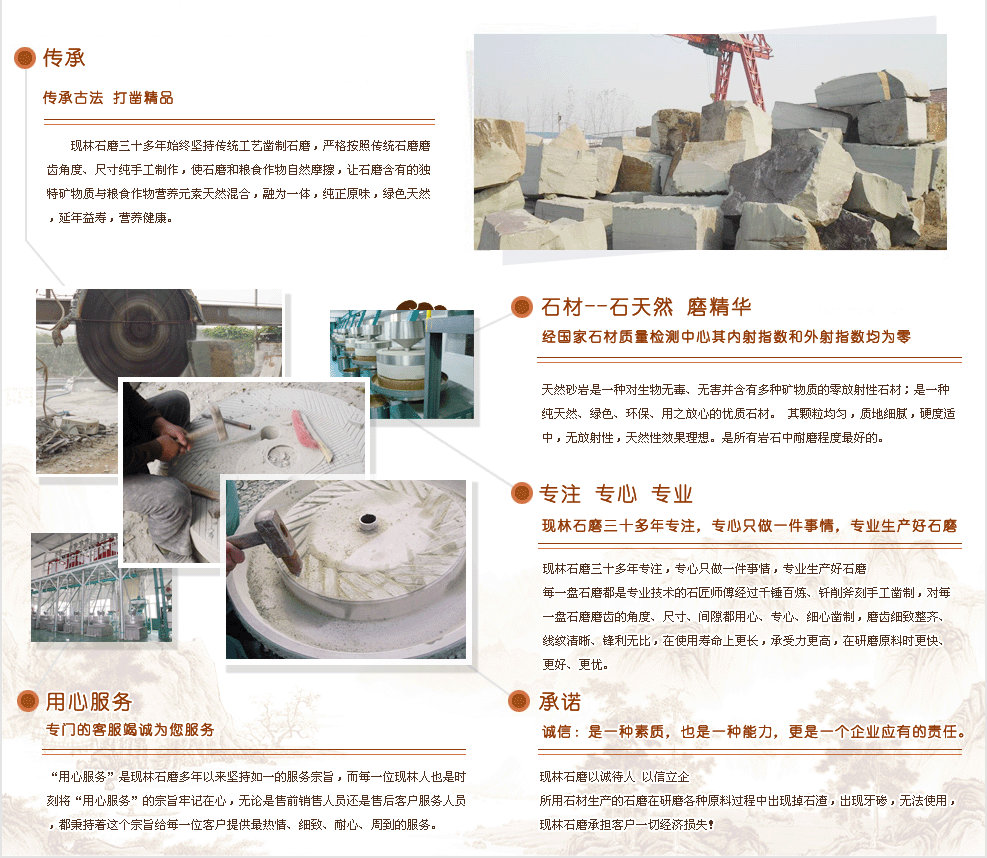 • 石磨豆?jié){機(jī)特點(diǎn) 電動(dòng)石磨豆?jié){機(jī)廠 家現(xiàn)林石磨品質(zhì)有保證 • 全自動(dòng)石磨面粉機(jī) 買石磨面粉機(jī)就選山東現(xiàn)林 • 香油石磨廠家直銷 電動(dòng)香油石磨機(jī) 現(xiàn)林石磨業(yè)內(nèi)口碑好 • 傳統(tǒng)小磨香油工藝 • 傳承石磨文化,打造健康理念,現(xiàn)林石磨做石磨行業(yè)領(lǐng)導(dǎo)品牌 • 又見(jiàn)石磨,又聞麥香,現(xiàn)林石磨! |